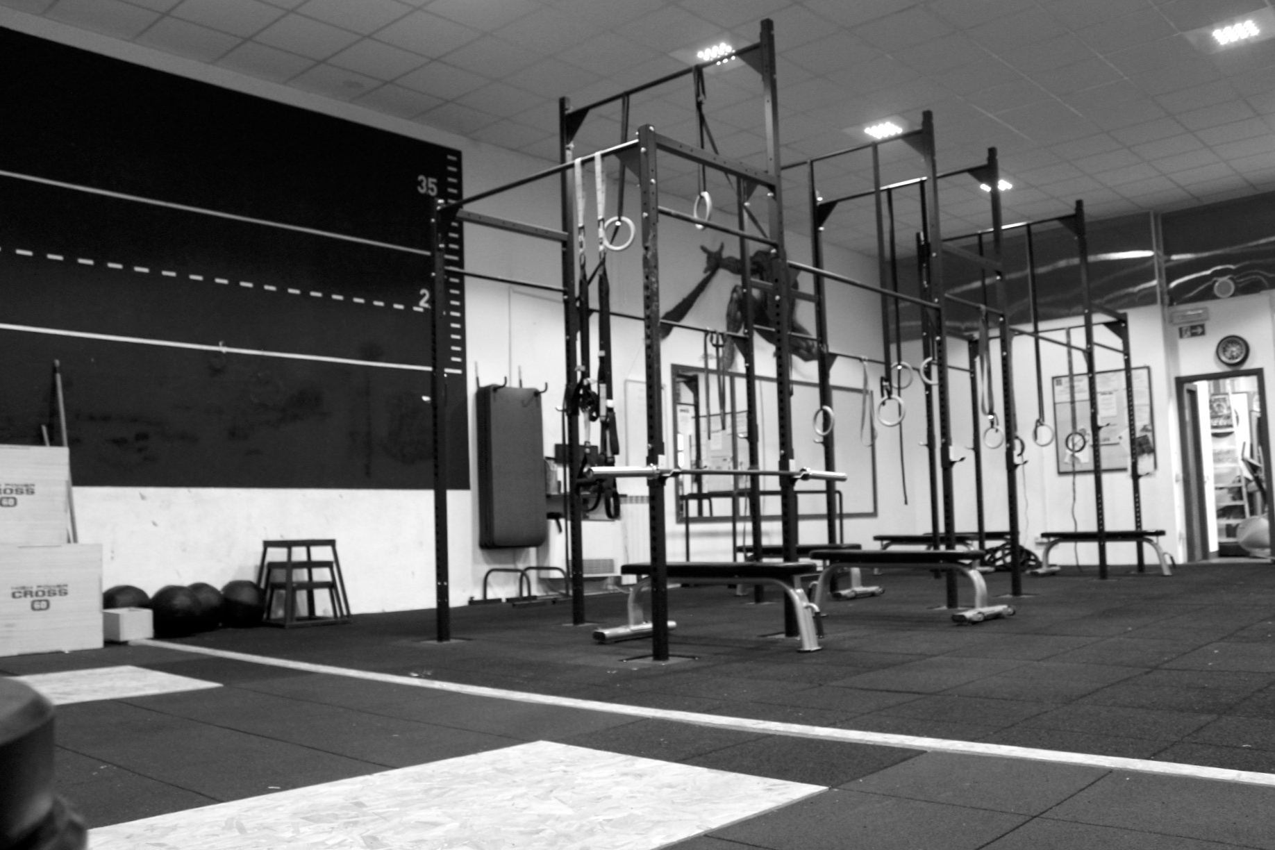 Sala Functional: 130mq – pavimentazione specifica anti shock – struttura Rig con postazioni per squat e panca – postazioni da 360cm per gli anelli -postazioni libere per le trazioni – pedane per stacchi olimpici – parallele e spalliera per la gioia dei “Calistenici” … e tutto quanto possa servire per i migliori allenamenti funzionali: kettlebells, palle mediche, sandbag, water pipe, plyometric boxes, bilancieri olimpici, bilancieri tecnici (leggeri), wall ball, ab mat, …